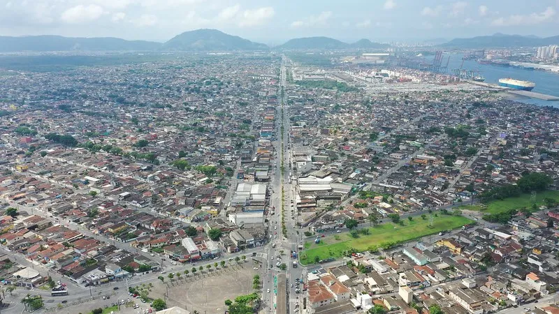 A Avenida Tiago Ferreira é seu coração comercial com mais de quatrocentos estabelecimentos. É em seu trecho final que se localiza a estação das barcas e catraias por onde circulam diariamente cerca de vinte mil pessoas em direção ao sistema de travessia com destino à cidade de Santos do outro lado do estuário, local que abriga um dos maiores Portos do mundo.
